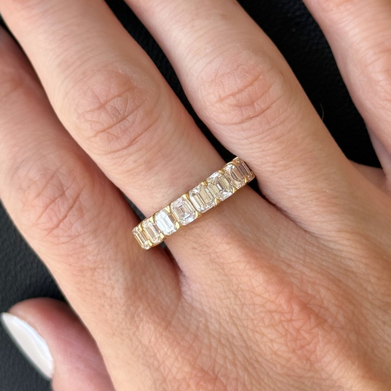 Not just any ring, but the ring. You know, the one taking center stage in your jewelry box for years to come. The Agnes ring takes us to another time and place with its half circle Emerald cut natural diamonds, made to incite admiration and install empowerment.