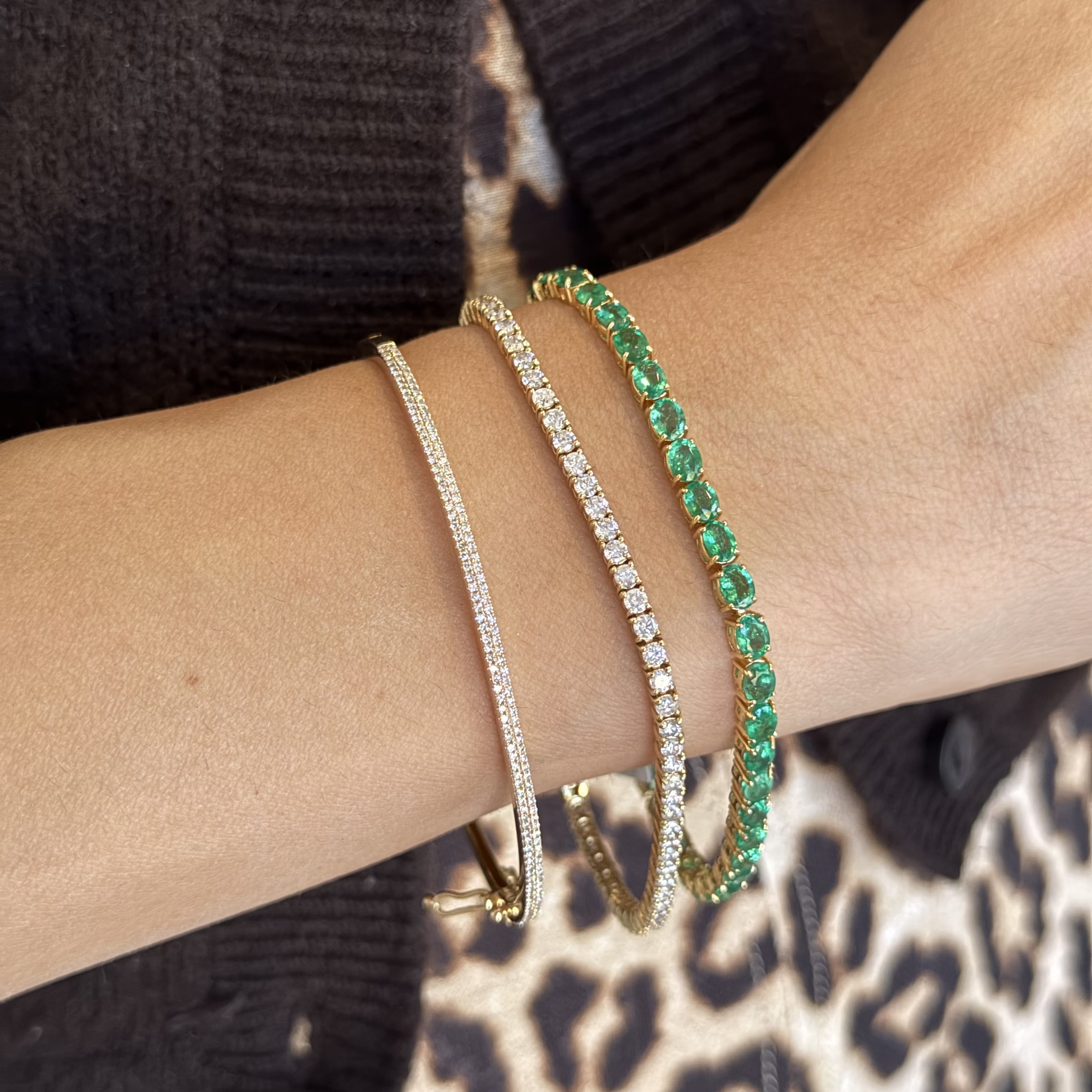 A Tennis Bracelet that evokes images of luxury and glamour. This eternity bracelet features a deep intense green emeralds in an oval cut that are selected for their ideal make, beauty, and size. Securely held with a conceal clasp for comfortable, everyday wearability or any special occasion.